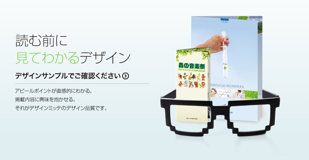 デザインミッテでは4ページや三つ折りミニパンフなど